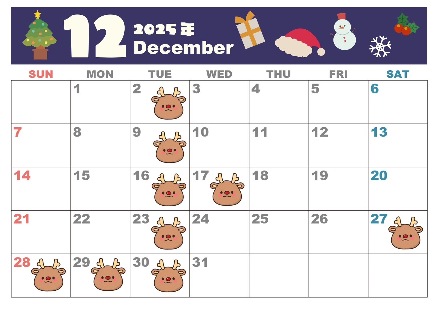 12月休店日のカレンダーになります😁