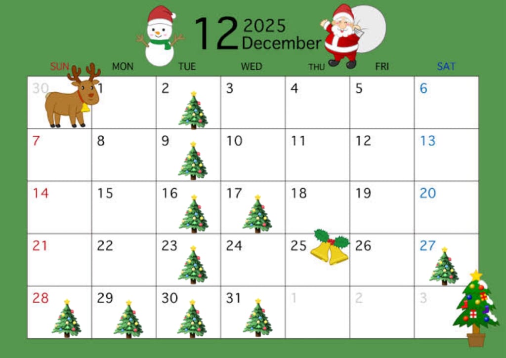今回は12月の店休日のご案内です♪