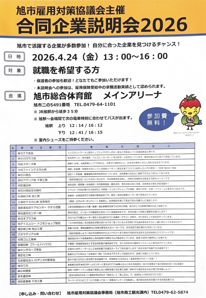 今回は、旭市で開催される合同企業説明会2026についてお知らせいたします🐦